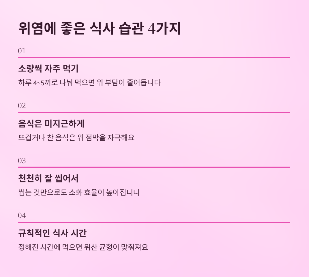 위염은 특별한 약보다 식단과 생활 습관이 더 큰 영향을 줄 수 있습니다.